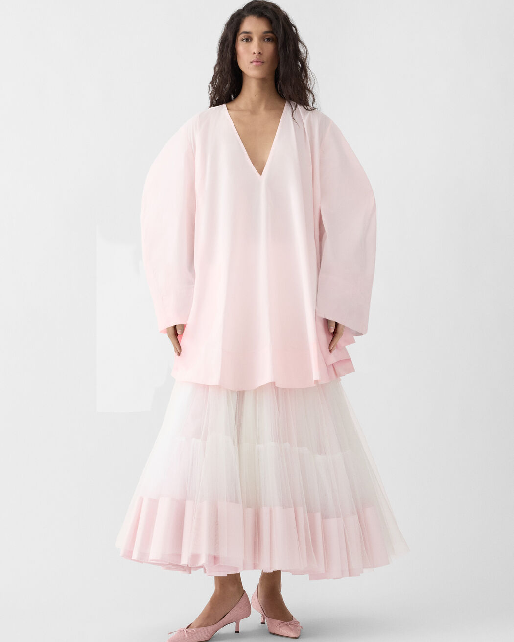 - Wide curved sleeves